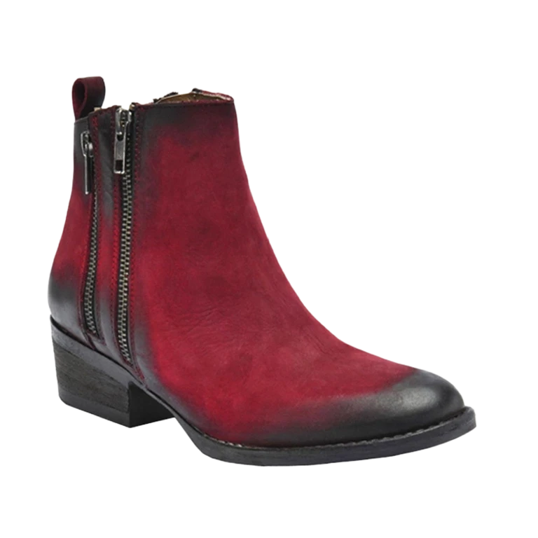 Turn heads with these bold burnished red leather booties from Circle G by Corral. With double zipper accents, premium leather construction, and a stylish round toe, these boots bring western charm with a modern edge. Limited-time offer!