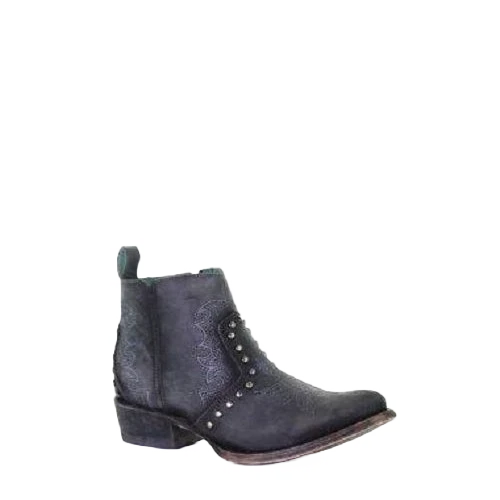 Corral Boots Corral Ladies Black Embroidery & Studs Round Toe Ankle Boots C3729