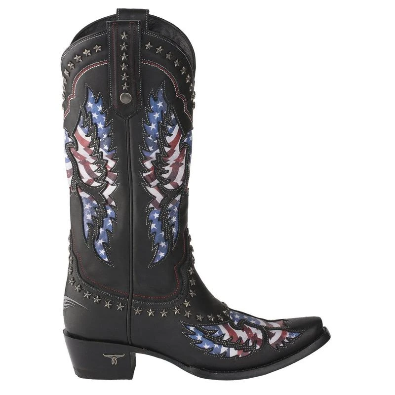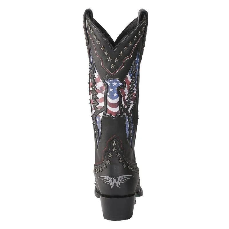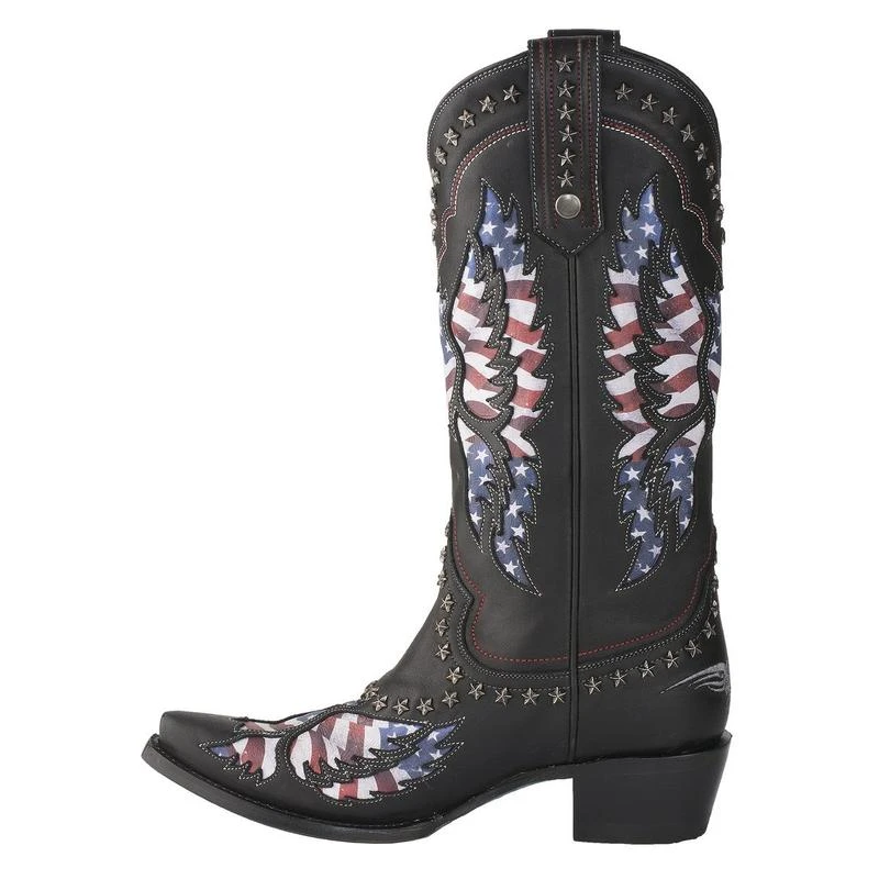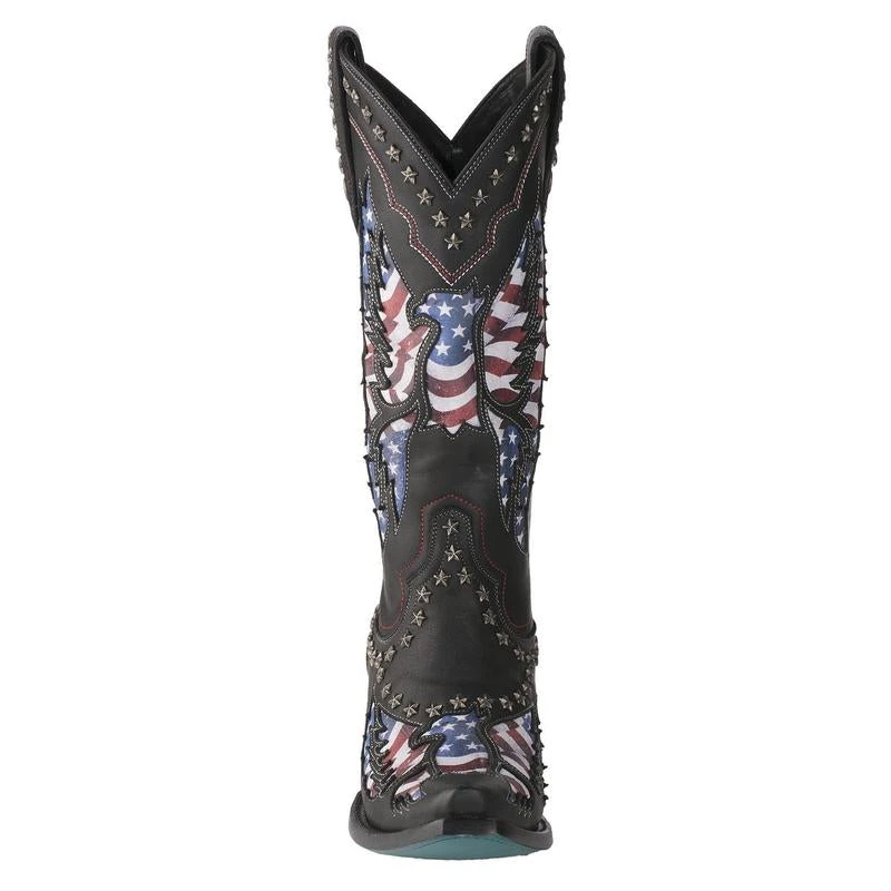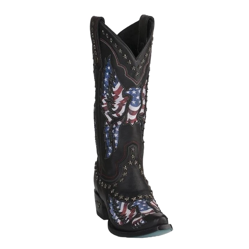 Lane Ladies Old Glory American Flag Jet Black Snip Toe Boots LB0414A